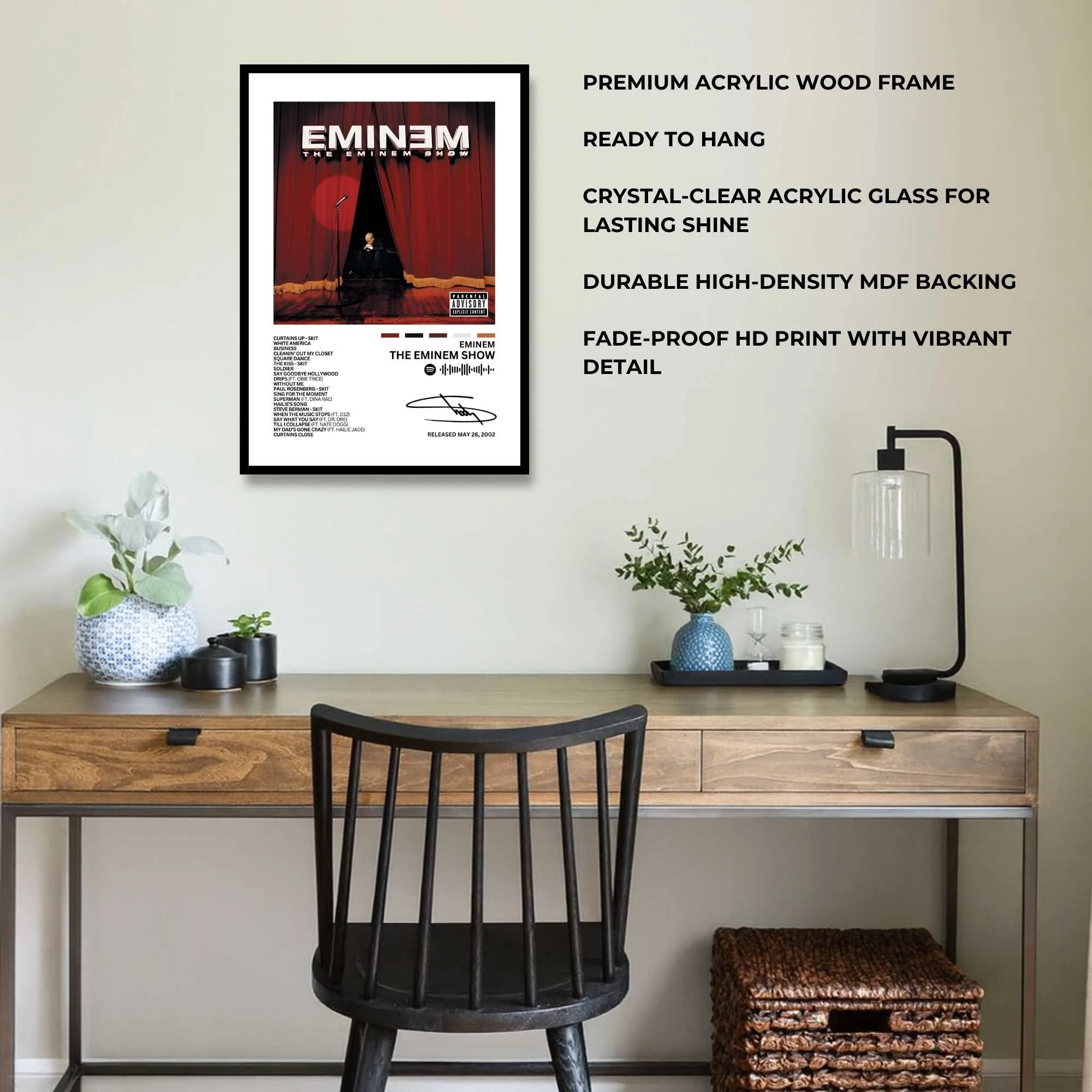 This artwork celebrates Eminem’s “The Eminem Show”, capturing his fearless storytelling and unapologetic artistry. With a bold and expressive aesthetic, it stands as a tribute to his signature style and lyrical genius. A perfect piece for those inspired by raw emotion and creative power.