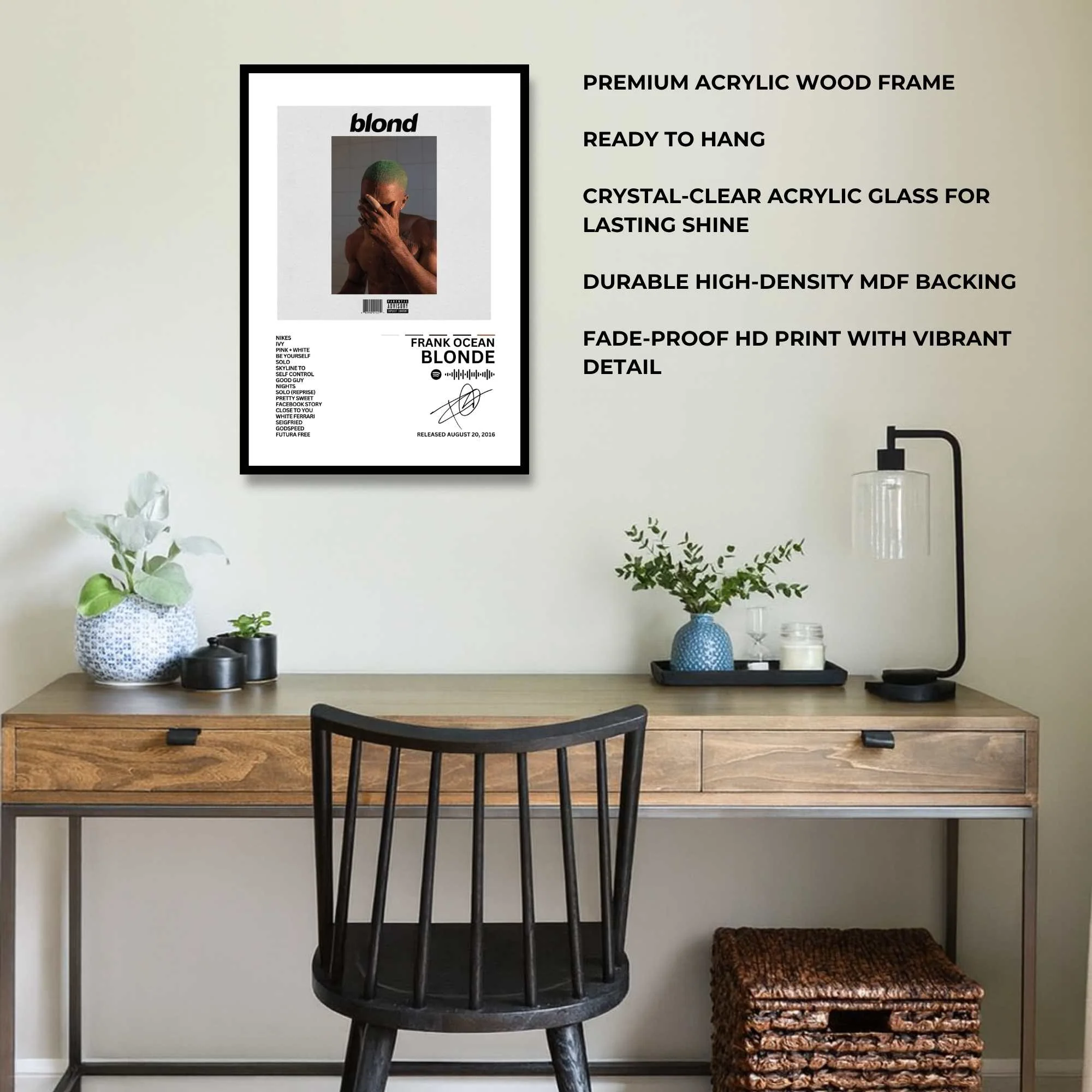 This artwork captures the emotive depth and minimalist elegance of Frank Ocean’s “Blonde”, reflecting themes of identity, love, and introspection. Its aesthetic simplicity and subtle tone mirror the album’s emotional honesty. A signature tribute to modern artistry and vulnerability.