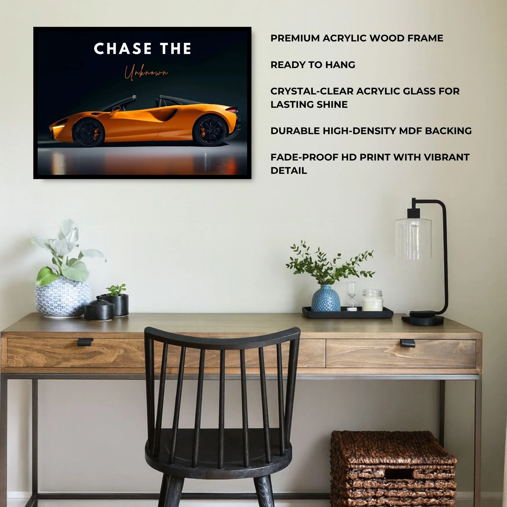 Bring racing passion to your space with this McLaren framed wall art. A premium, ready-to-hang print showcasing the iconic McLaren supercar, built for those who live to push limits — perfect for car enthusiasts, modern home decor, man caves, or automotive-inspired offices. This artwork embodies speed, innovation, and fearless ambition, inspiring you every day to chase the unknown.