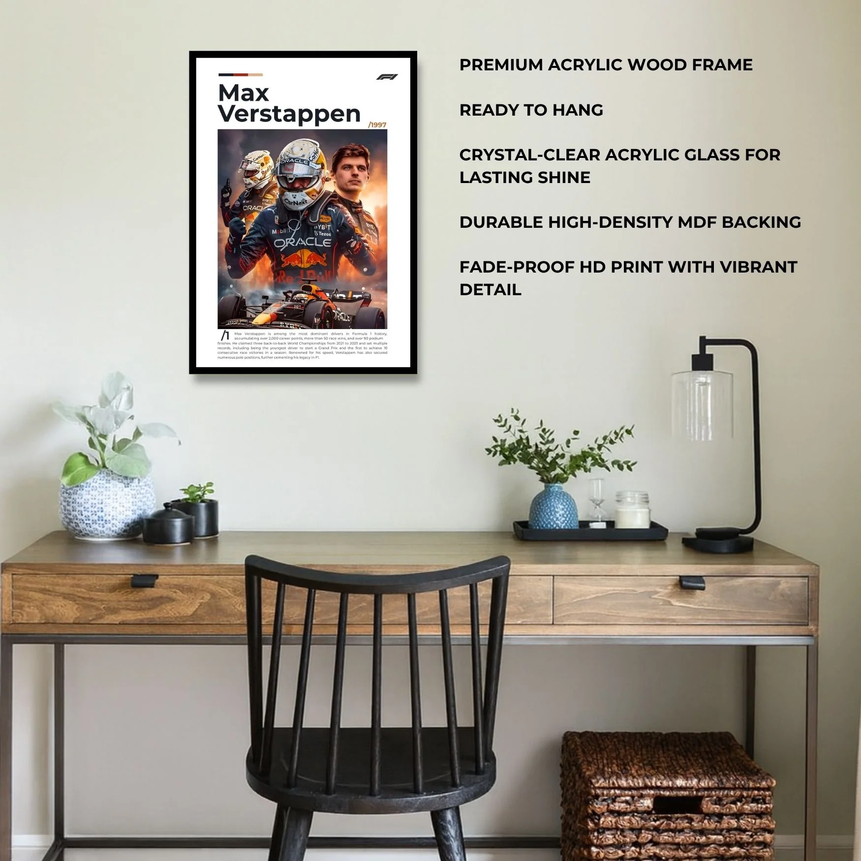 Fuel your space with championship energy through this Max Verstappen – F1 framed wall art. A premium, ready-to-hang print celebrating Red Bull Racing’s dominant force and the thrill of Formula 1 victory. Perfect for die-hard F1 fans, modern home décor, gaming rooms, or motorsport-inspired offices.